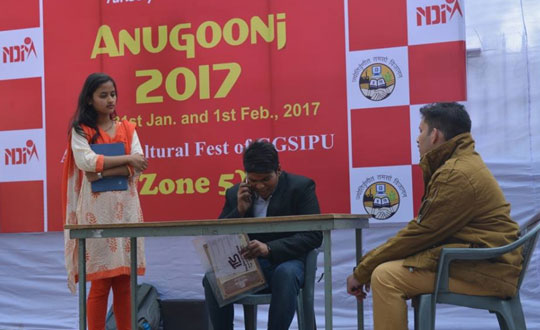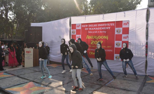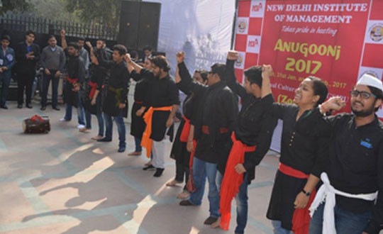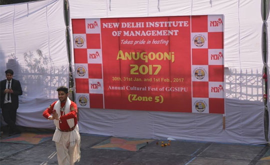 NDIM successfully hosted the prelims of Anugoonj 2017, the Annual cultural fest of the GGSIPU for zone 5 at its campus. The 3-day schedule witnessed participation of around 500 students from across 30 colleges of Delhi-NCR. The prelims were conducted to hold contests in an array of colorful cultural, dramatics and literary events including street plays, quizzes, debate, Street Dance, Choreography, Nach Baliye, Classical Dance, Foot Loose and Folk dances, collage, clay modeling, cartooning, creative writing, poetry, on the spot painting, DJ war and Battle of bands. This 3-day extravaganza proved to be a platform for students to show their enthusiasm, creative skills and tremendous stage presence.