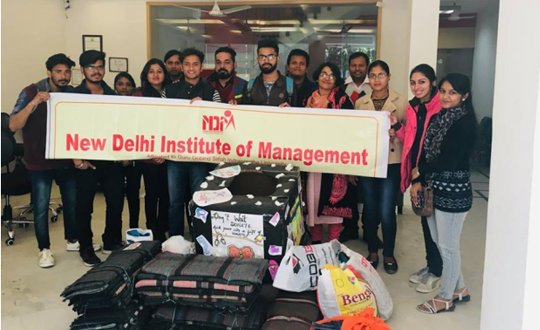 Today on 19th January, 2019, a drive was organized to donate warm clothes and blankets at AIIMS Shelter Homes and on the streets of Delhi (Lodhi Area Road) to physically challenged people and other destitute families by the institute. A team of NDIM students with CSR club members made a full day exercise and finally returned with a shine of satisfaction to do something for society.