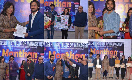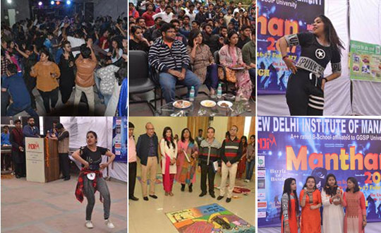 MANTHAN is an Inter-College, Annual, National Level Cultural extravaganza organized by New Delhi Institute of Management showcasing multifarious talent of students from our institute and other colleges, is organized with great enthusiasm every year. This year, the grand fiesta was organized on two days on 16th Feb. at the institute and 17th Feb., 2017 at 'Sri Sathya Sai Auditorium', Lodhi Road, New Delhi. This 2-day fun-filled inter- college grandeur included a kaleidoscope of events including quiz competition, debate competition, creative writing, poster making, fashion show, the war of bands, DJ competition, etc. It witnessed huge participation of students from different colleges and universities across Delhi including Delhi University, DTU, Jamia Millia Islamia, Amity, GGSIPU and many others. The fest was graced by the presence of dignitaries from various fields including Hon'ble Sardar Tarlochan Singh Ji, Ex- M.P., Former Chairman and Vice-Chairman, National Commission for Minorities GOI, Ms. Rama Rani Hota, IRS and Ms. Indra Bansal along with Ms. Rajni Subba, Former Beauty Queen Ms. Shampa Sircar, Ms. Meenu Dewan and Ms. Kanchan Bhutani.
