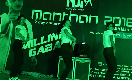Meraki Meraki, NDIM’s Dance Society,organizes dance competitions like Solo, Duet and group dance competitions. The students actively participate at different competitions outside the college at different levels performing different dance forms.