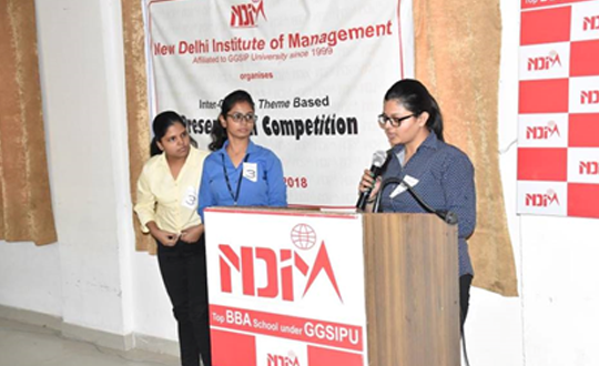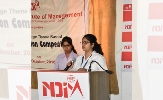 NDIM Organises: An inter-college theme based Presentation Competition on 17th October 2018 was organized at NDIM campus. A total of 15 teams including outside colleges, participated in the competition. Participants had a great zeal and enthusiasm throughout the day and appreciated other teams as well. Third position was bagged by Prithvi & Jayant. Ms. Nivedita, Neenu & Nishita stood at second position and Hemant & Abhishek scored the first prize in the competition. All the judges and organizing committee, congratulates all the participants and winners of the competition.