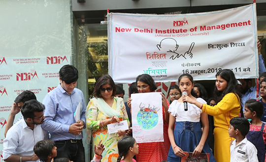 Sankalp, NDIM’s CSR and Social Entrepreneurship Society, celebrated World Literacy Day 2018 with national level NGO Aarohan, and received an award for their efforts from Tobacco – A Quit Tobacco Movement for their admirable work towards the cause. Under its Spirit of Giving Initiative, NDIM organizes blood donation camps, health camps, and awareness campaigns on traffic safety. NDIM students and faculty came together in large numbers to donate clothes, medicine, hygiene products and health kits to the Kerala Relief Fund, in association with AIIMS.