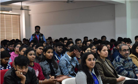 In the beginning itself, the first speaker initiated a group discussion and then asked the students to assume the role of owners of a business and whether they will engage in CSR or not. Further the next speakers shared their experiences on how CSR activities fulfill the long term business objectives and what challenges arise while doing so. In the last, the students were allowed to ask questions.
