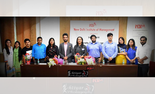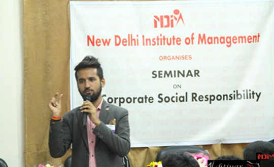 NDIM organised a day long seminar on the notion CSR, its challenges, prospects and consequences on 29th April, 2017 in the campus. The Corporate experts, Mr. Sunny Mehta from Kopal Partners, Ms Divya Arri, HR manager E&Y and Mr. Gaurav Banerjee, Manager Branding, Diageo were invited to carry on with the deliberations for the day.