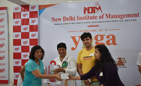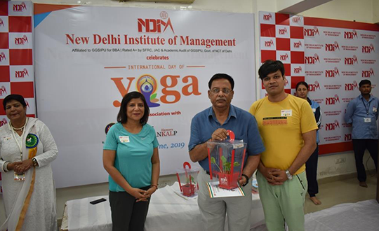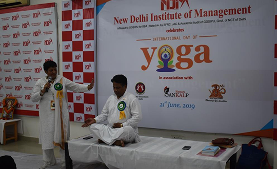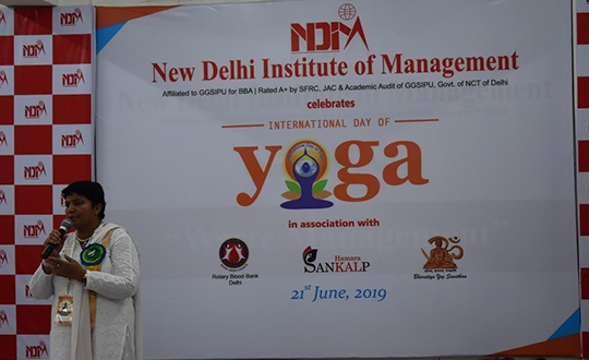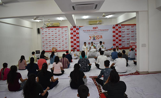 NDIM celebrated International Yoga Day on the 21 June, 2019 at the campus in association with Bhartiya Yoga Sansthan. The event was attended by around 70 participants and became a grand success with members from the Rotary Blood Bank and Sankalp NGO. The trainers made the participants undergo an invigorating and relaxing yoga aasanas session enjoyed by one and all.